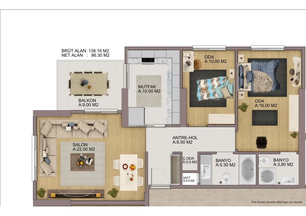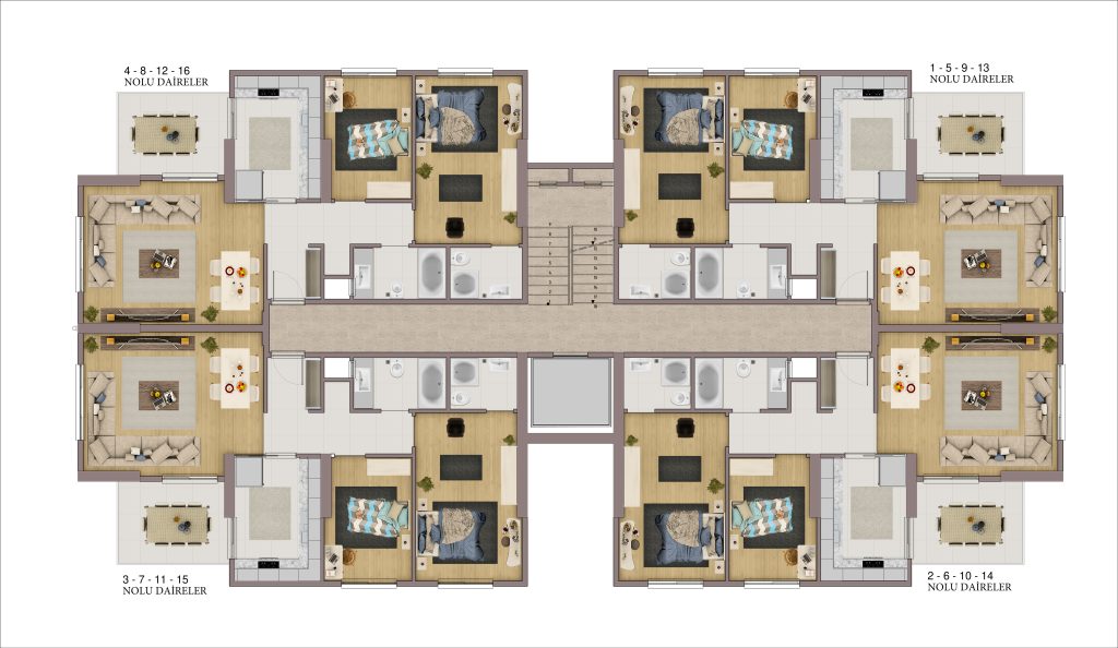 - En son deprem yönetmeliğine uygun radye temel, betonarme kaset döşeme sistemi ile inşa edilecektir.